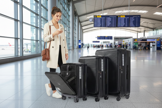 3 Piece Luggage Set w/Front Opening, TSA Approved Lock, Hardshell Suitcase-Black
