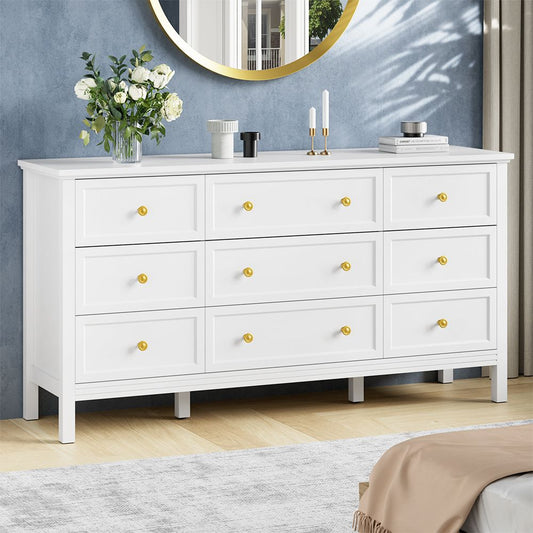 9 Drawer Dresser, Wood Storage Cabinet w/Metal Handles-White or Black