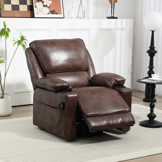 Power Lift Chair, Recliner Sofa w/Vibration Massage and Heat, Remote, Side Pockets, Faux Leather-Brown