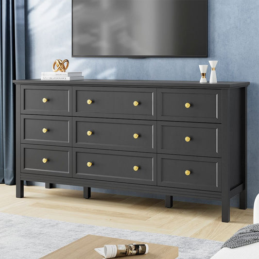 9 Drawer Dresser, Wood Storage Cabinet w/Metal Handles-White or Black